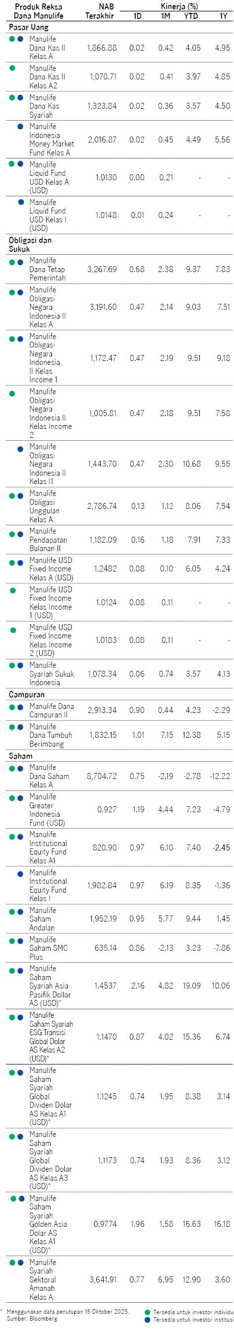 Di Asia, pasar Korea Selatan mencatat kinerja unggul (indeks Kospi +2.49%) didukung oleh optimisme Korea dapat mencapai kesepakatan dagang baru dengan AS, terutama terkait ekspor otomotif. TSMC melaporkan pertumbuhan laba 39.1% YoY di 3Q-25 mengungguli ekspektasi pasar didukung permintaan kuat untuk chip AI dan 5G. Secara keseluruhan indeks MSCI Asia Pacific ditutup +0.99%.