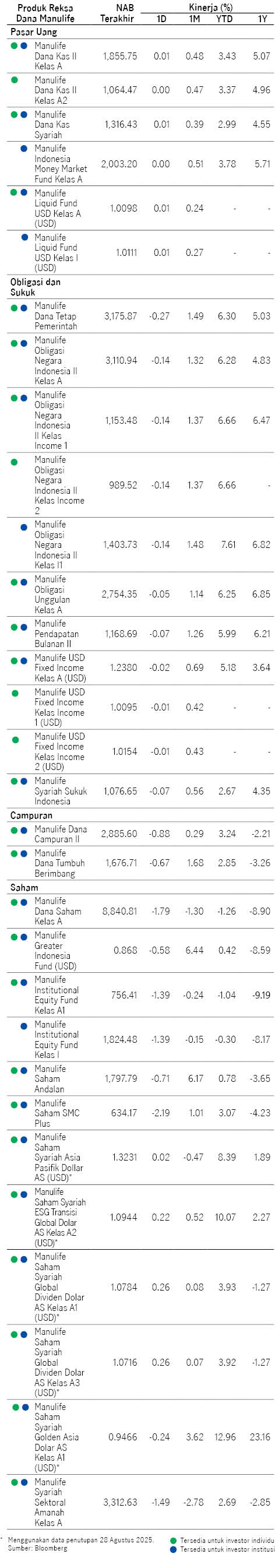 Pasar domestik melemah di perdagangan Jumat dibayangi aksi unjuk rasa masyarakat. Indeks saham IDX80 melemah -1.77% dengan seluruh sektor mencatat pelemahan kecuali sektor industrial. Investor asing mencatat penjualan bersih IDR1.1 triliun di pasar saham. Indeks obligasi BINDO juga ditutup turun -0.03% dengan imbal hasil SBN 10Y naik dari 6.31% ke 6.35%. Nilai tukar Rupiah melemah -0.89% ke level 16490. Sementara itu data PMI manufaktur Indonesia naik ke 51.5 di Agustus, pertama kalinya kembali ke zona ekspansi sejak Maret 2025.