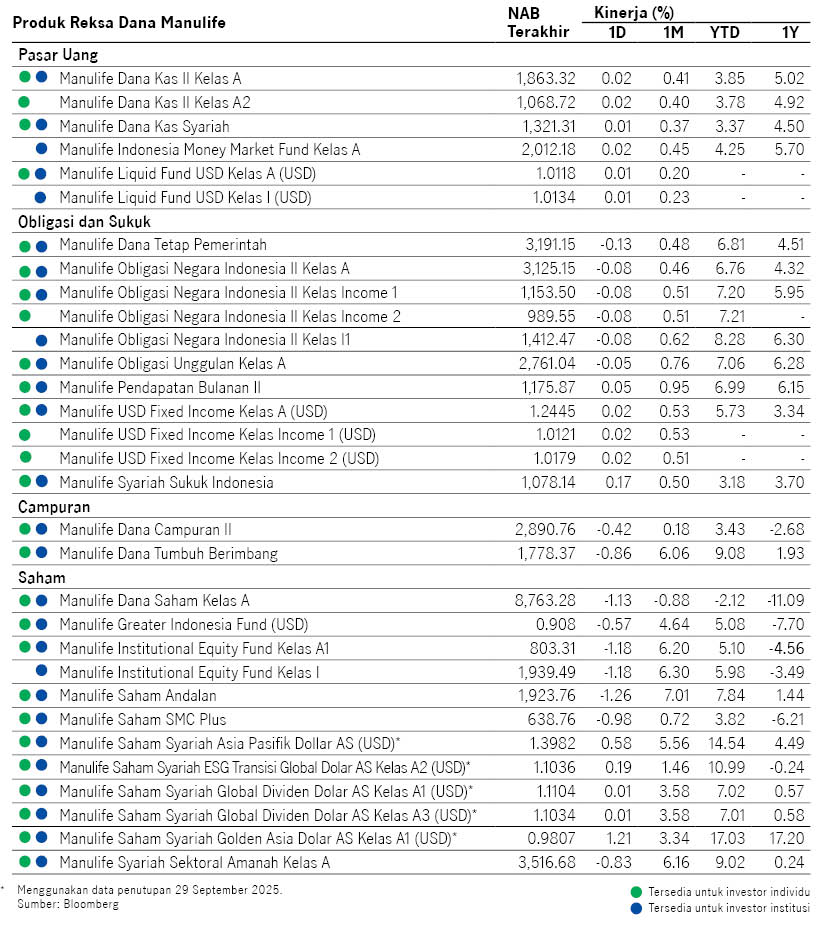 Pasar domestik melemah, dengan indeks IDX80 turun -0.88% dipengaruhi oleh investor asing yang mencatat penjualan bersih IDR1.7 triliun. Indeks obligasi BINDO juga turun -0.05% dengan imbal hasil SBN 10Y relatif stabil di 6.36%. Data PMI manufaktur Indonesia turun ke 50.4 di September dari sebelumnya 51.5, tetap di zona ekspansi walau dalam pertumbuhan yang melemah. Menteri Keuangan Purbaya menyatakan belum mempertimbangkan untuk membahas batas defisit APBN, dan lebih memprioritaskan untuk membuat belanja negara lebih tepat sasaran dan efisien.