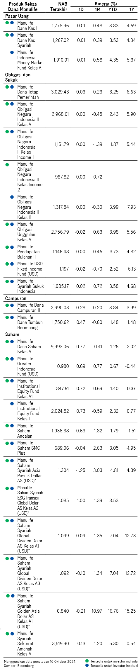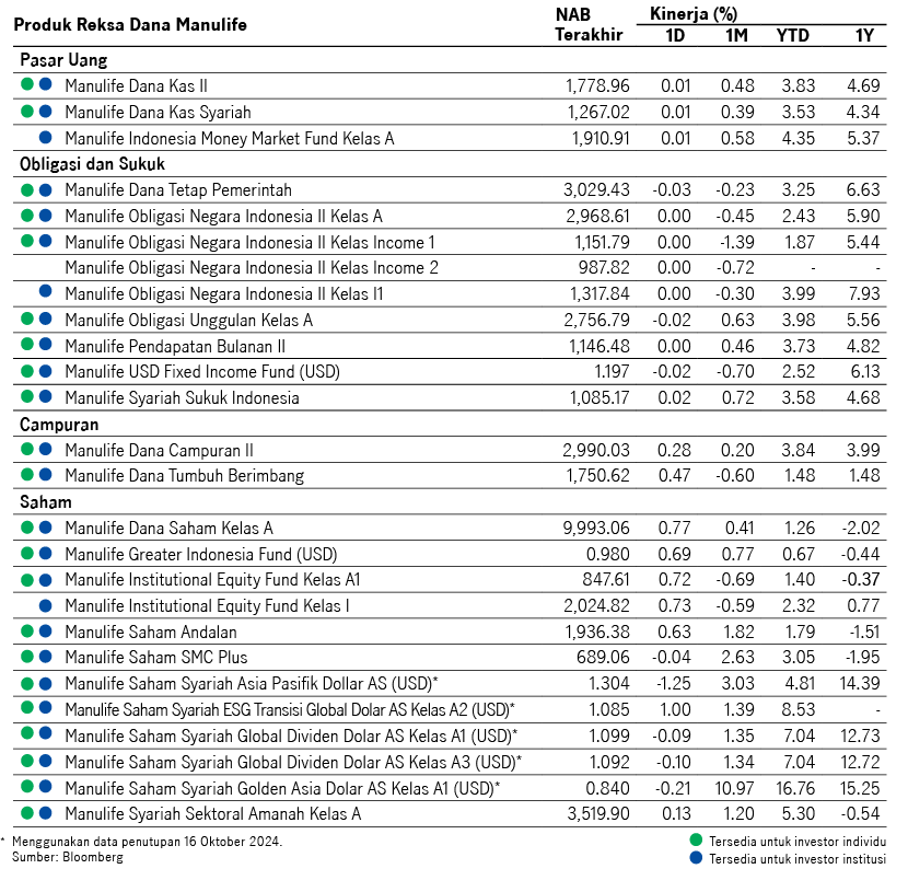 Pasar saham kawasan Asia melemah dengan indeks MSCI Asia Pacific ditutup turun 0.42%. Kinerja indeks dibayangi oleh pelemahan pasar China, di mana indeks CSI 300 turun 1.1% dan indeks Hang Seng turun 1.0%, karena kekecewaan pasar terhadap kebijakan stimulus di sektor properti. Selain itu, mayoritas pasar lain di Asia juga melemah, di mana indeks Kospi Korea -0.04%, indeks Topix Jepang -0.1%, dan Nifty India -0.9%.
