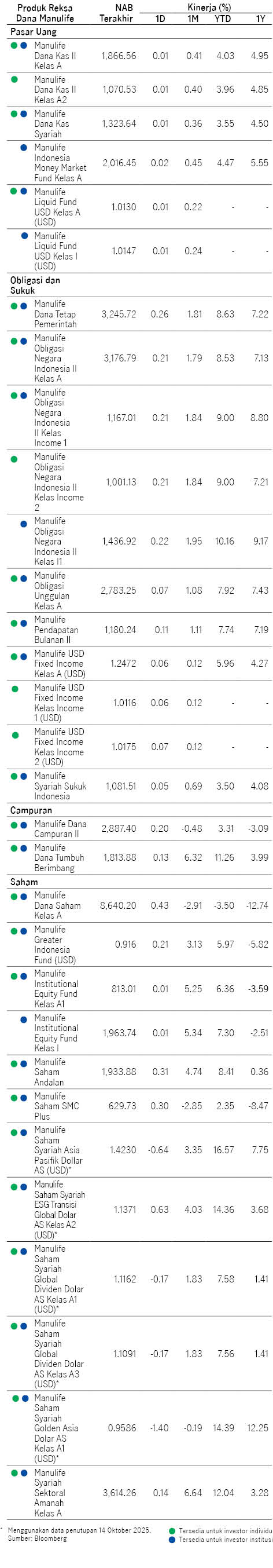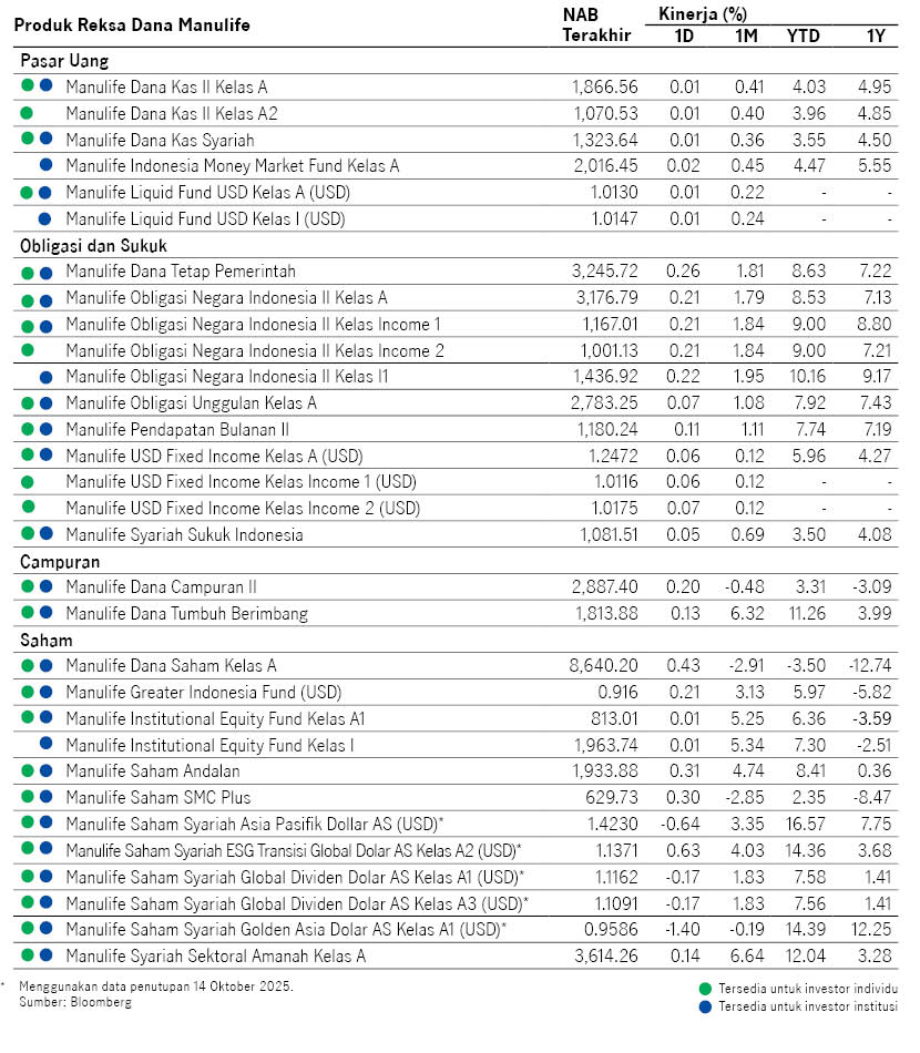Pasar saham AS bergerak fluktuatif namun berhasil ditutup positif merespons laporan earnings dari perbankan besar AS. Bank of America dan Morgan Stanley melaporkan earnings 3Q yang mengungguli ekspektasi pasar. Namun volatilitas pasar relatif tinggi di tengah tensi dagang AS - China, walaupun kabar terkini dari Menteri Keuangan AS Scott Bessent mengindikasikan dapat memperpanjang tenggat waktu negosiasi dagang apabila China membatalkan pengetatan ekspor rare earth. Meningkatnya volatilitas pasar tercermin dari indeks VIX yang naik ke level 20.6 dari posisi akhir September di 16.2. Indeks S&P 500 ditutup naik +0.40% dan imbal hasil UST 10Y turun dari 4.03% ke 4.02%.