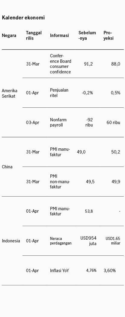 Bank Indonesia mempertahankan BI Rate di 4.75% pada rapat 17 Maret lalu, dan menegaskan fokus kebijakan untuk menjaga stabilitas Rupiah di tengah volatilitas kondisi global. BI menghilangkan pernyataan terhadap potensi penurunan suku bunga, mengindikasikan pandangan semakin terbatasnya ruang penurunan suku bunga. Menteri Keuangan menyampaikan efisiensi anggaran senilai IDR81 triliun dan menegaskan defisit fiskal tetap dijaga di bawah 3% dari PDB. Pasar obligasi ditutup positif pekan lalu dengan indeks BINDO +0.08% dan imbal hasil SBN 10Y relatif stabil di kisaran 6.86%. Sementara itu pasar saham melemah dengan IHSG -0.14% dan IDX80 -0.07%.